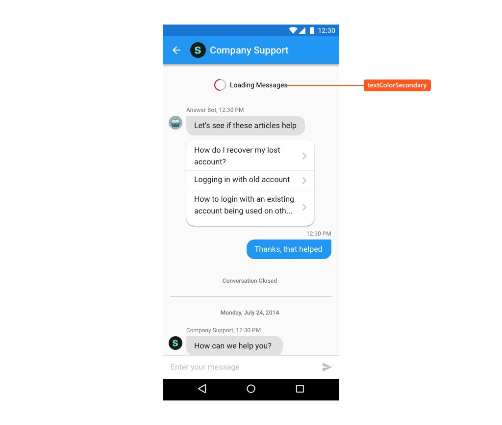 You can give the Material look and feel of your app to Helpshift SDK by customizing very few attributes as follows: